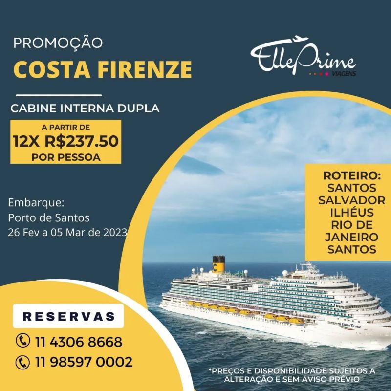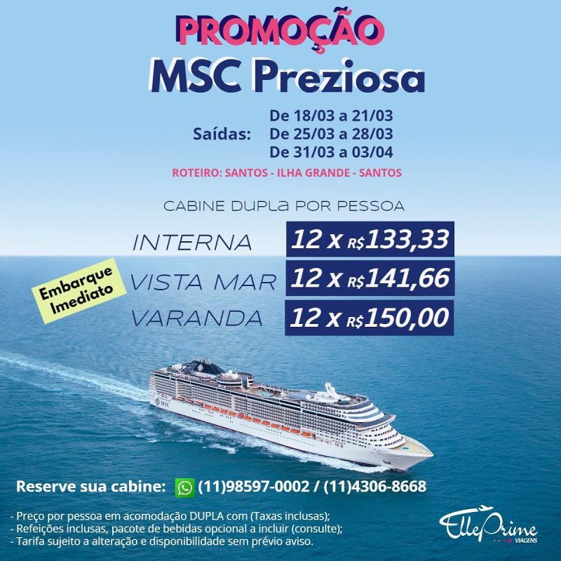 Os melhores cruzeiros nacionais e internacionais você encontra na Elle Prime Viagens.